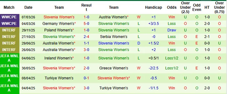 Thống kê phong độ 10 trận gần nhất của Nữ Slovenia