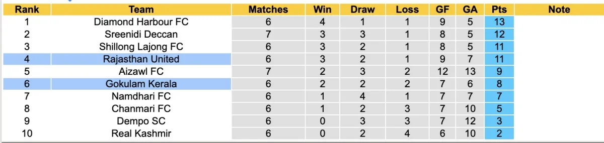 Không chỉ phong độ hiện tại không ổn định, thành tích thi đấu trên sân khách của Gokulam Kerala cũng rất kém khi họ không biết đến chiến thắng trong 4 lần hành quân gần nhất, trong đó thua 3 trận. Trong khi đó, Rajasthan United đã có 10 trận sân nhà chỉ thua 1 và thắng tới 7 trận.