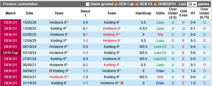 Lịch sử đối đầu giữa Hvidovre và Kolding