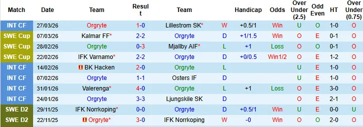 Thống kê phong độ 10 trận đấu gần nhất của Orgryte