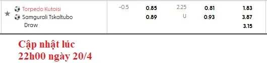 Kèo châu Á: Chọn Torpedo Kutaisi