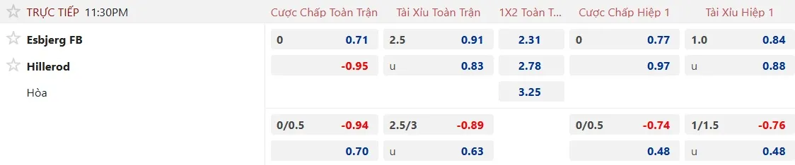Kèo nhà cái Esbjerg vs Hillerod