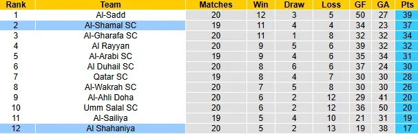 Al-Shamal đang có hiệu suất giành điểm rất tốt với 11 chiến thắng từ đầu mùa. Trong khi đó, Al Shahaniya đã để thua đến 13 trận. Bản lĩnh và sự tự tin của Al-Shamal hứa hẹn giúp họ có được 3 điểm ngay trên sân khách.