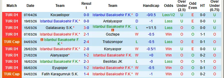 Thống kê phong độ 10 trận gần nhất của Istanbul Basaksehir