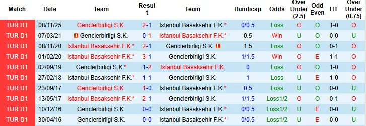6 trong 10 trận đối đầu gần đây trên sân của Istanbul Basaksehir không có quá 2 bàn thắng. Hai trận đấu gần nhất của Istanbul Basaksehir đều kết thúc với tỷ số hòa 0-0. 6 trong 7 trận gần đây của Genclerbirligi cũng có tỷ số xỉu 2 3/4.