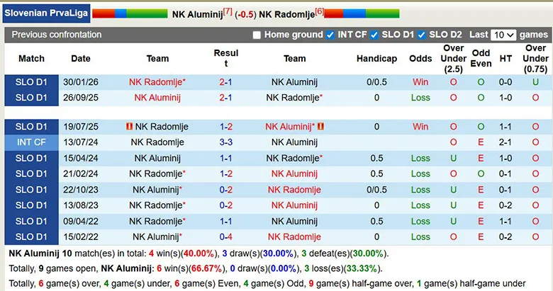– Lịch sử đối đầu NK Aluminij vs NK Radomlje
