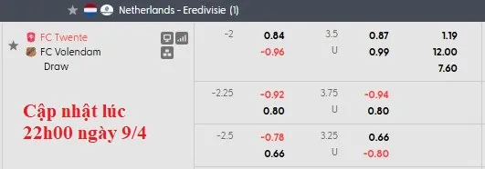Mức chấp dành cho Twente trong trận đấu này lên tới 2 hòa, một con số khá cao nhưng cũng không hoàn toàn đáng tin cậy. Từ đầu mùa, họ chỉ thắng kèo 10 trận, hơn 2 đội ở Eredivisie, trong khi Volendam có tới 16 trận thắng kèo, chỉ kém 2 đội.
