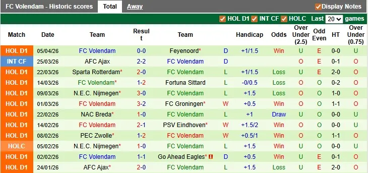Ngược lại, Volendam đang trải qua chuỗi 4 trận liên tiếp không có chiến thắng (hòa 1, thua 3). Đội bóng này cũng đã thua 5 trong 6 trận sân khách gần đây. Hiện tại, Volendam chỉ hơn đội đứng thứ 16 là Excelsior 1 điểm, đội sẽ phải tham gia play-off trụ hạng.