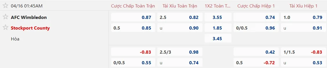 Kèo nhà cái Wimbledon vs Stockport County