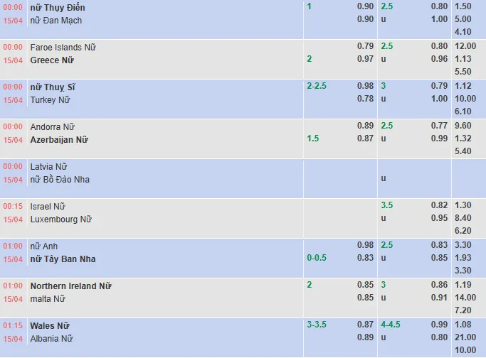 Nhà cái đã đưa ra mức kèo Nữ Azerbaijan chấp -1 1/2 theo handicap. Đây là mức chấp hợp lý dựa trên sức mạnh hiện tại của hai đội. Azerbaijan tạo được sự tin tưởng khi bất bại 5 trận gần nhất theo kèo châu Á (thắng 4, hòa 1).