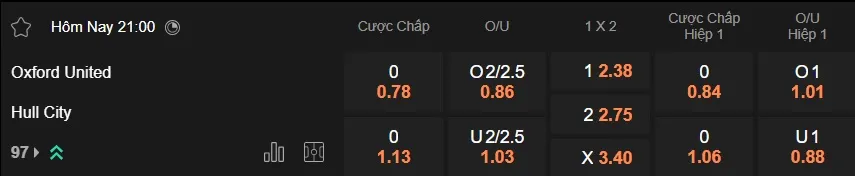 Mặc dù đang đứng áp chót trên bảng xếp hạng và tiếp đón đội bóng cạnh tranh suất thăng hạng, nhưng Oxford vẫn "ngồi mâm trên" với tỷ lệ chấp 1/4 trái, cho thấy niềm tin lớn từ các nhà đầu tư dành cho các cầu thủ chủ nhà. Tuy nhiên, cần lưu ý rằng trong 3 trận đấu gần đây mà Oxford chấp kèo tương tự, họ đều không thể giành chiến thắng và bị cầm hòa. Đối với Hull City, đội khách đã thắng kèo châu Á trong 7/8 trận sân khách gần đây cùng với 2 trận đối đầu gần nhất.