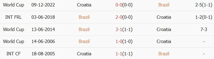 Thống kê phong độ, lịch sử đối đầu của Brazil vs Croatia