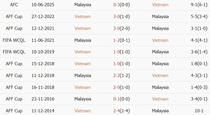 Thống kê phong độ, lịch sử đối đầu của Việt Nam vs Malaysia