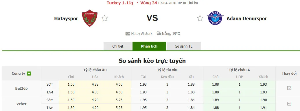 Soi kèo tài xỉu Hatayspor vs Adana Demirspor