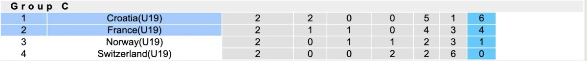 Thống kê phong độ, lịch sử đối đầu của U19 Pháp với U19 Croatia