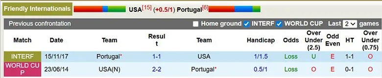 – Lịch sử đối đầu giữa Mỹ và Bồ Đào Nha cho thấy sự chênh lệch về đẳng cấp và phong độ giữa hai đội tuyển.