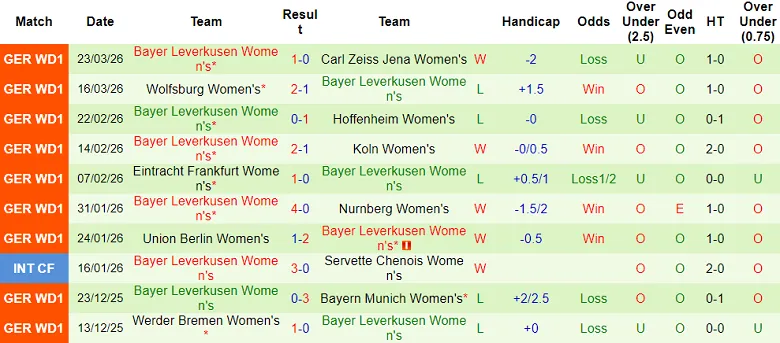 – Phân tích kết quả 10 trận gần nhất của nữ Leverkusen