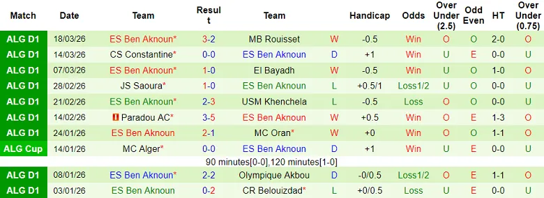 – Thống kê kết quả 10 trận gần nhất của Ben Aknoun