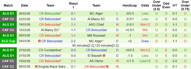 – Tiếp theo, chúng ta sẽ xem xét kết quả 10 trận gần nhất của CR Belouizdad để hiểu rõ hơn về phong độ của họ.
