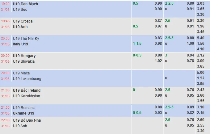 Dù đá sân khách nhưng với áp lực buộc thắng và danh tiếng của mình, U19 Anh vẫn được nhà cái đánh giá nhỉnh hơn khi chấp điểm ăn theo handicap 0:0. Tuy nhiên, U19 Bồ Đào Nha không dễ bị đánh bại trên sân nhà. Hai đội đều sợ thua nên kịch bản hoà kèo dễ xuất hiện.